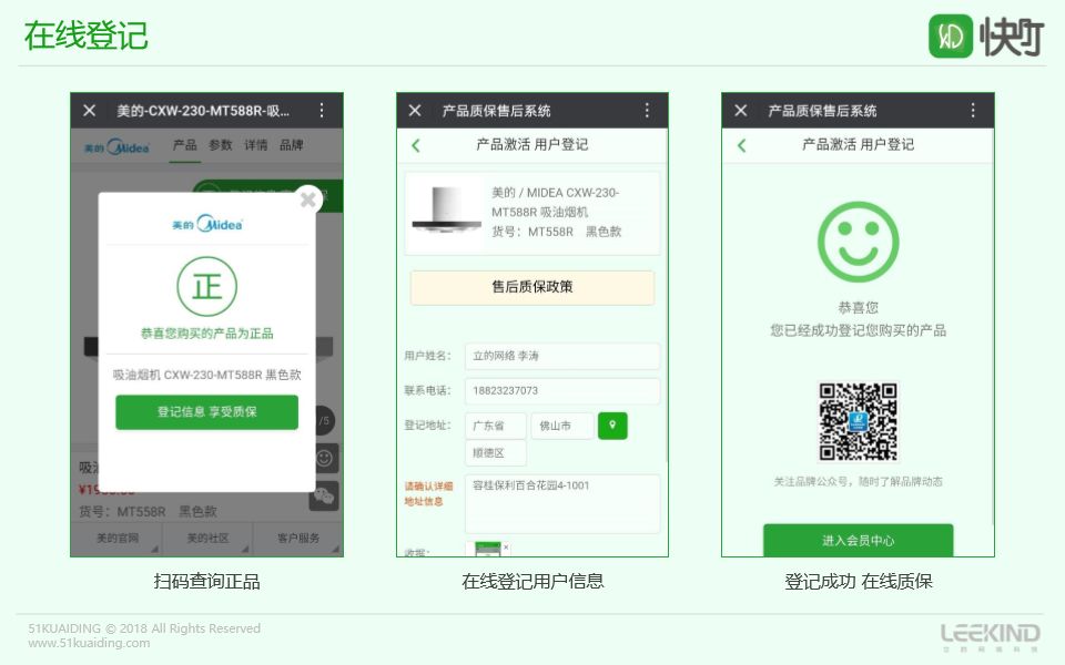 以上就是关于快叮的介绍,相信企业通过快叮可以更好的抓住新零售时代的用户大数据,销售大数据,产品大数据,为企业提供便捷的渠道。而用户就能通过快叮享受到更好的售后服务,相辅相成。最后,还有快叮的在线订货,移动订货功能即将上线,敬请期待!