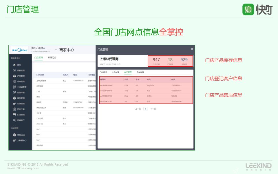 ▲了解全国门店的产品库存,客户信息以及产品售后信息。