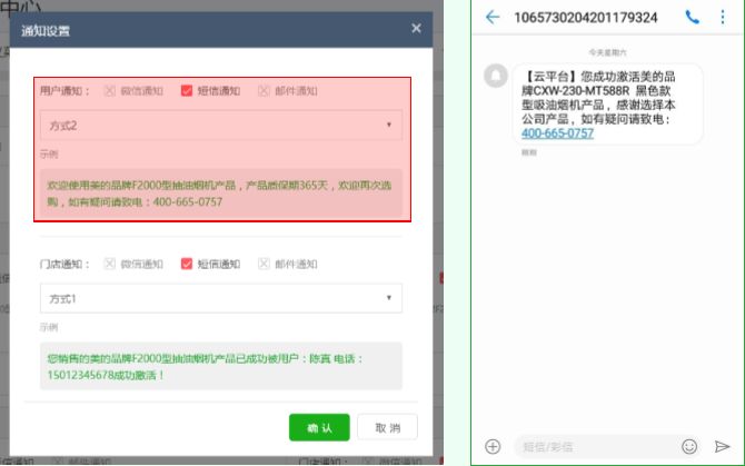 ▲根据不同客户需要,可选择激活成功信息发送内容。