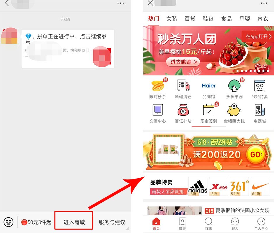 比如大家都比较熟悉的“拼多多”,就是利用拼团砍价的营销方式,让用户自主裂变分享到好友或者微信群内,好友只需要进入小程序帮助用户点一下“砍一刀”或者支付“拼单”,不仅满足了用户的需求,还能通过社交的属性裂变出更多有同样需求的用户,据了解,拼多多小程序月活用户已经达到8661万。