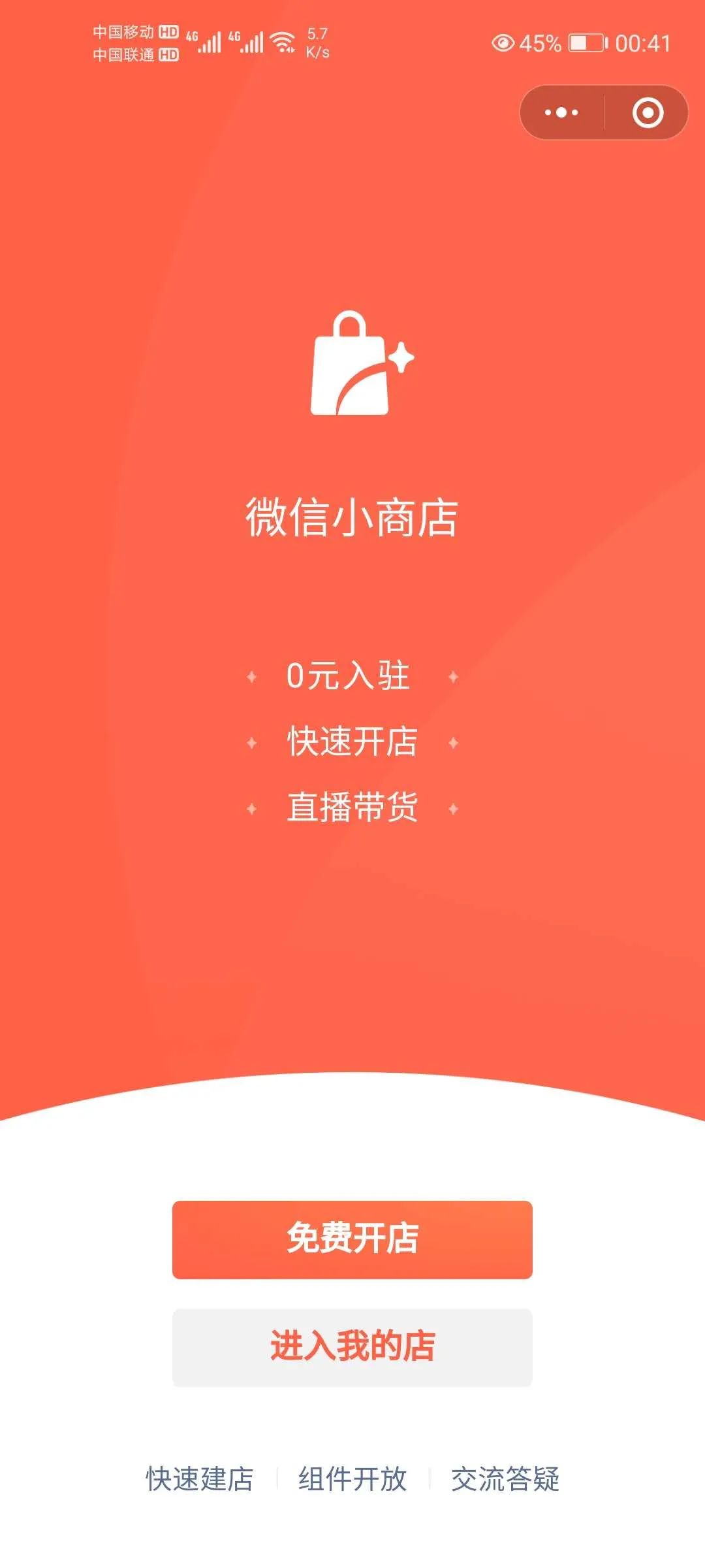 进入小商店助手点击“免费开店”即可