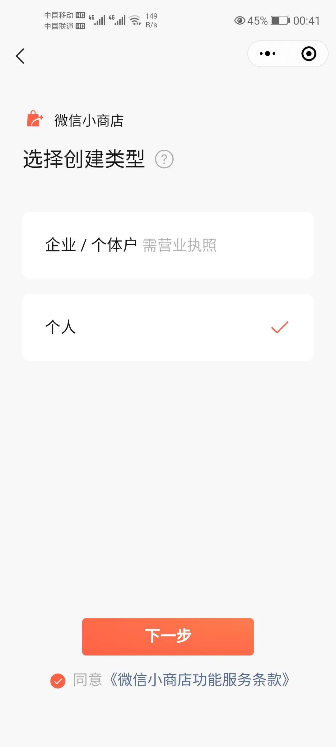 这一点与企业和个体不同,企业与个体,在创建小程序的时候,一个身份证一个手机号码只能最多创建5个店铺。一个微信号可绑定3个企业/个体小商店,一个企业/个体最多可开50个小商店。