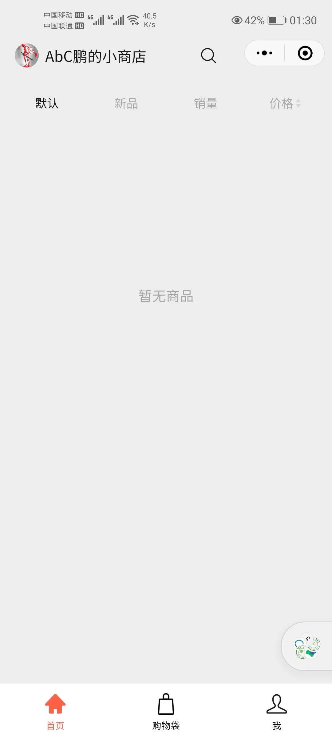 创建好的个人小商店展示面板固定格式如下“首页、购物袋、我”三项导航。左边是用户端展示的小商店,右边为我们个人小商店店主的管理后台。