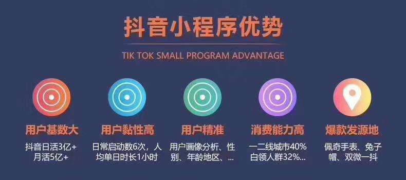 抖音小程序,是一个新兴的风口,是一个能让普通人一骑绝尘的机会。许多品牌商家长期以来一直瞄准这个巨大的流量平台,并选择高调入驻抖音。现在,抖音已进入小程序时代,这也反映了抖音想要利用信息流进行电子商务的新型变现模式,借助短视频的风口,打造属于自己的生态闭环。下面从以下几点来说下做抖音小程序的好处: