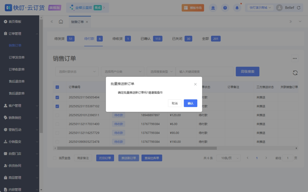 针对资金回笼问题快叮・云订货提供以 “核销 - 下单” 联动规则为核心的解决方案,系统自动校验客户历史账款状态。当客户存在 “待核销” 订单时,系统将禁止其提交新订单,只有客户确认收货且财务人员在系统核销后客户才能提交新的订单,确保每笔订单的款项结算与新订单生成形成闭环。这种管控模式既能避免人工干预的疏漏,又能以技术手段倒逼客户及时完成账款核销,从而缩短应收账款周期,保障企业现金流稳定,降低坏账损失的可能性。